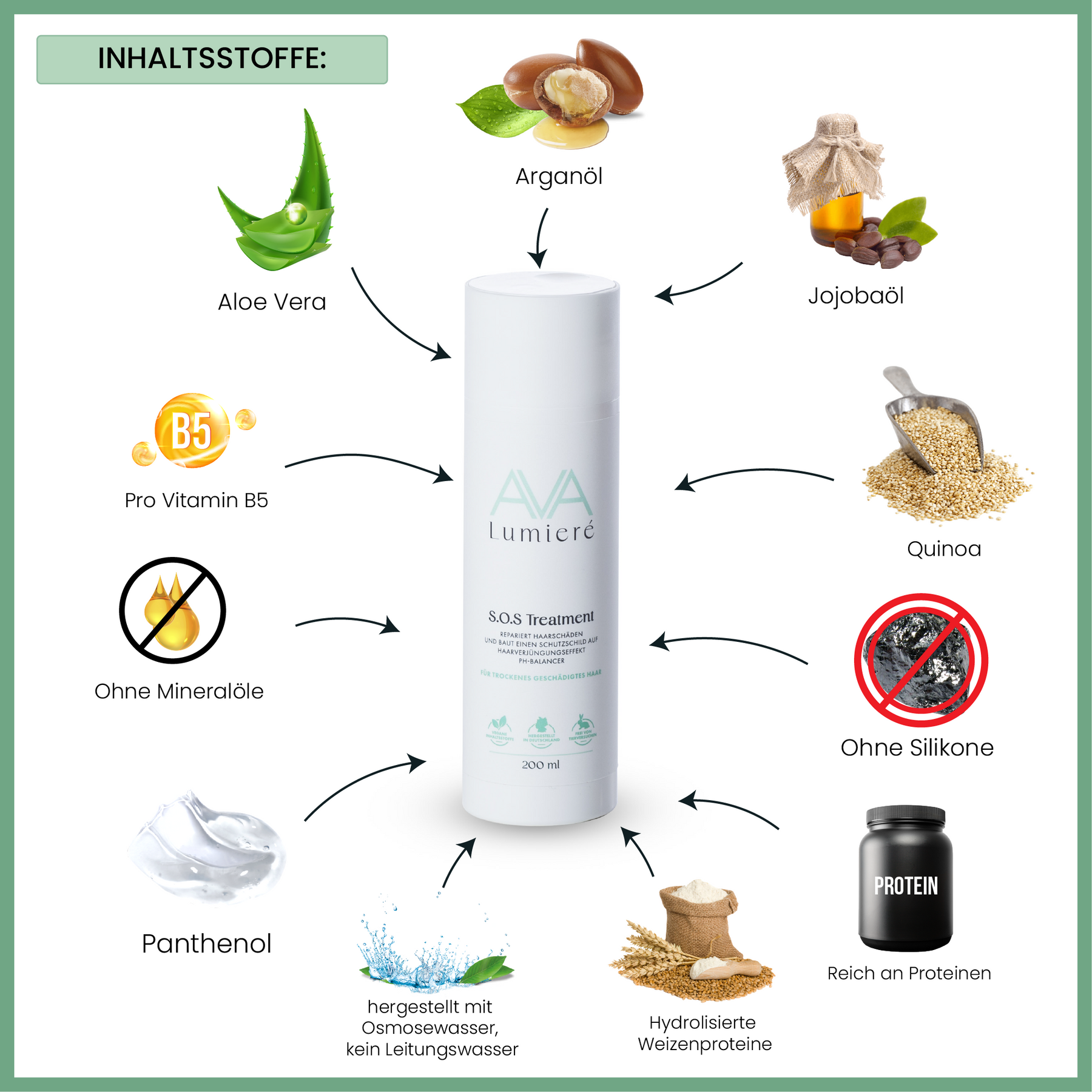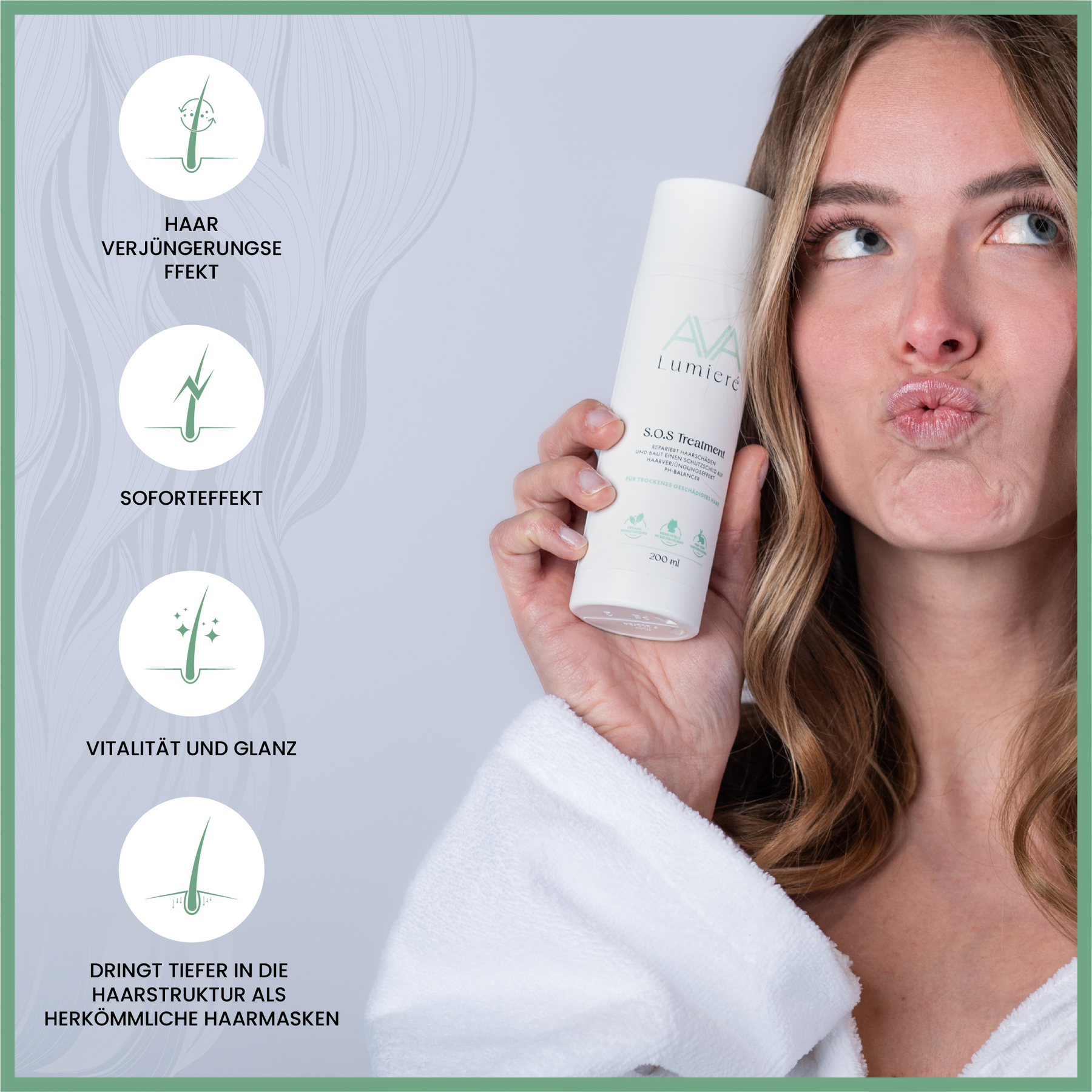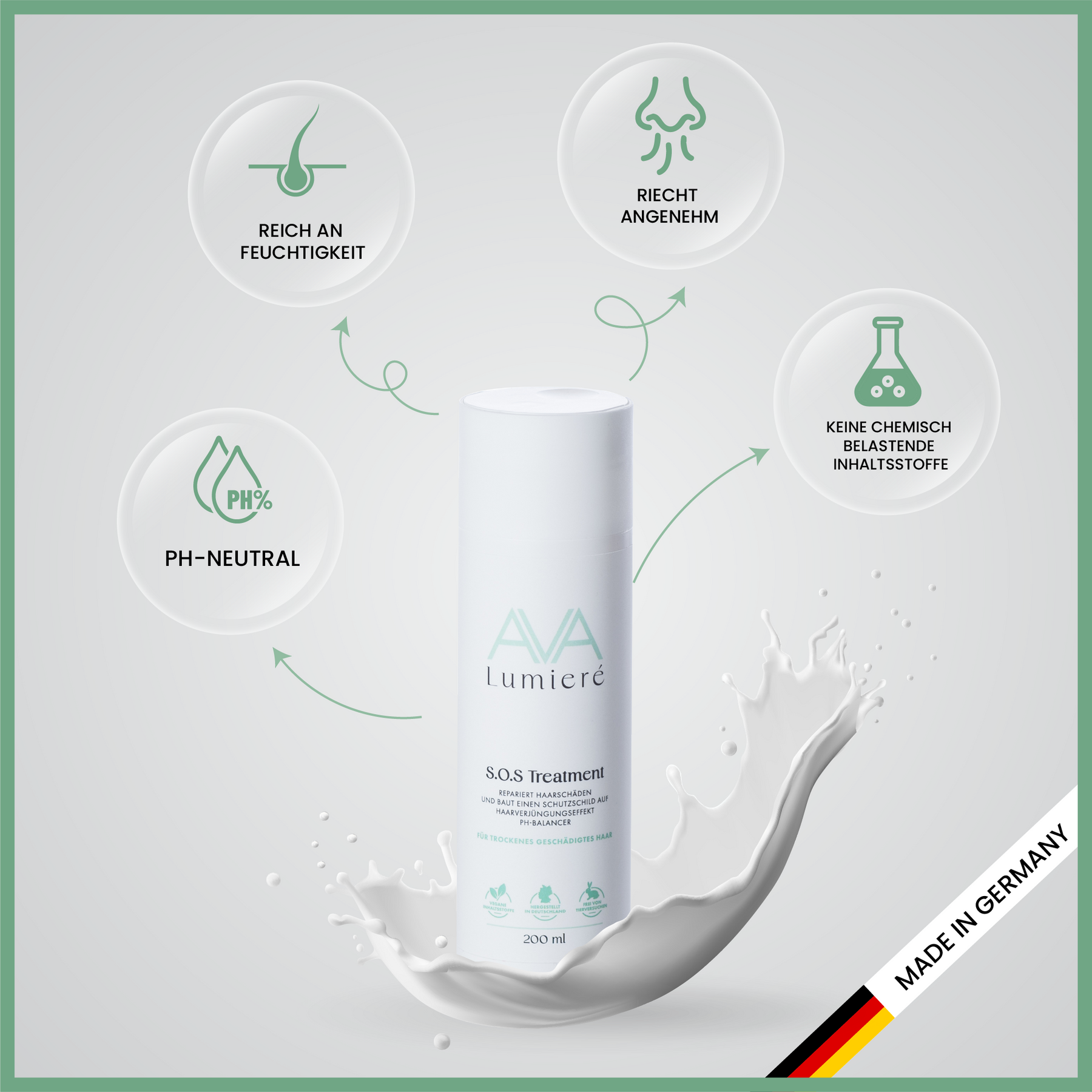 Das SOS Deep Repair von Ava Lumiere wurde in Deutschland von einem Friseurteam entwickelt und hergestellt.