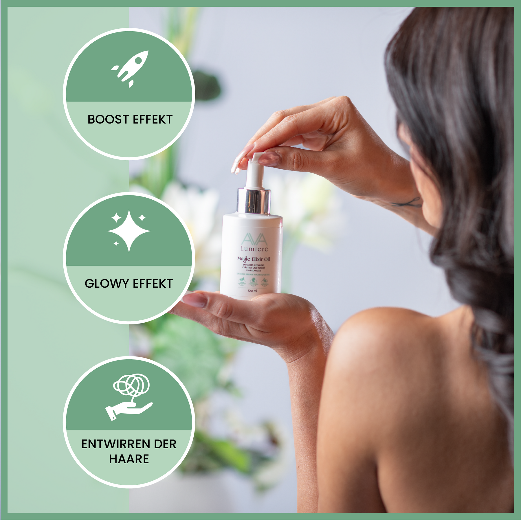 Achtung: Nur in Längen und Spitzen auftragen, nicht auf die Kopfhaut selbst.